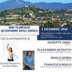 Si comunica che c/o il palasport di Carobbio degli Angeli giorno 1/12/2018 dalla ore 10:00 alle ore 12:00, avrà luogo l’evento “Mini Olimpiade – Allenarsi per il futuro“. Giornata dedicata alla scuola secondaria nell’ambito delle iniziative di orientamento, in collaborazione con l’amministrazione comunale di Carobbio degli Angeli.