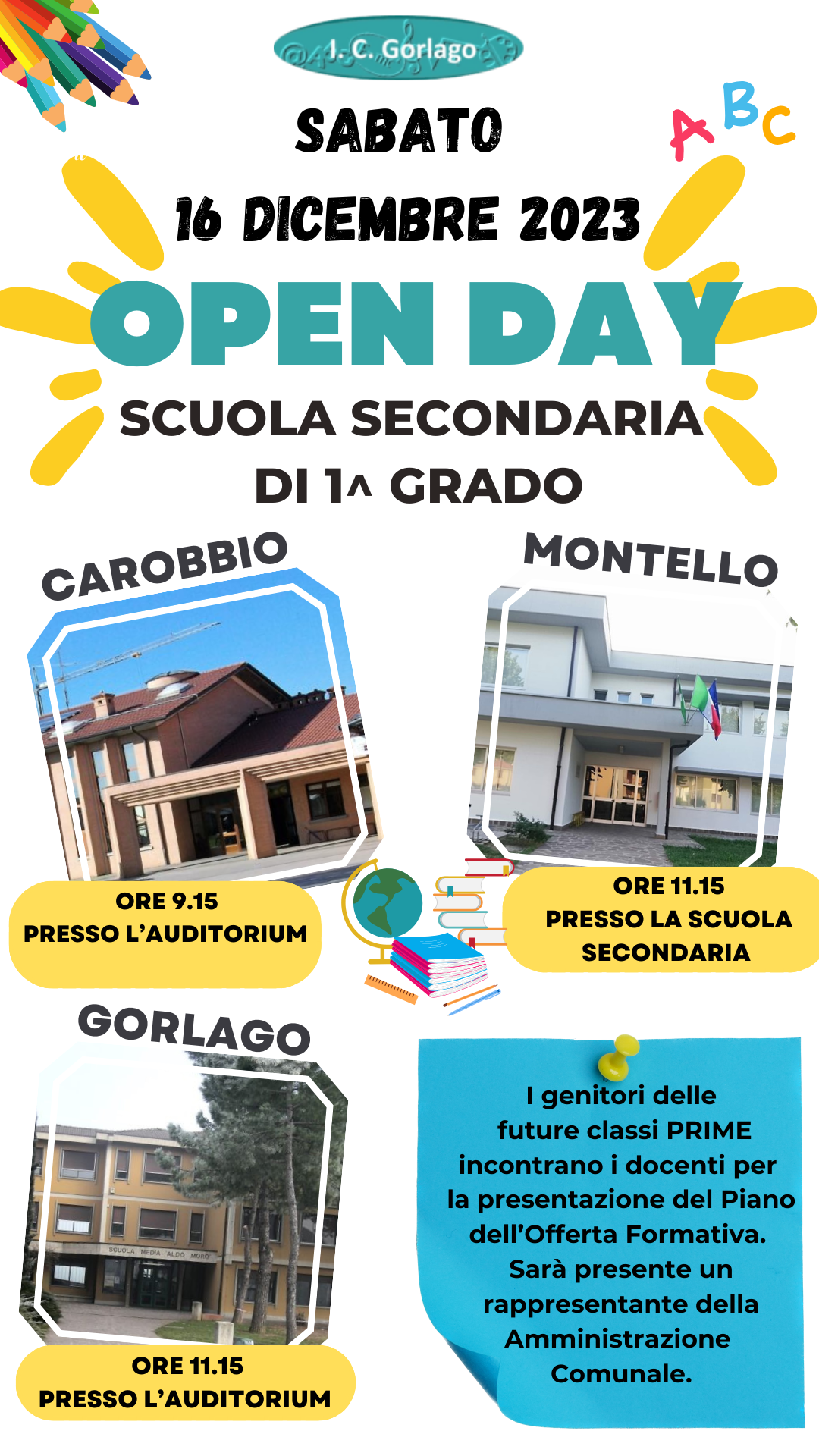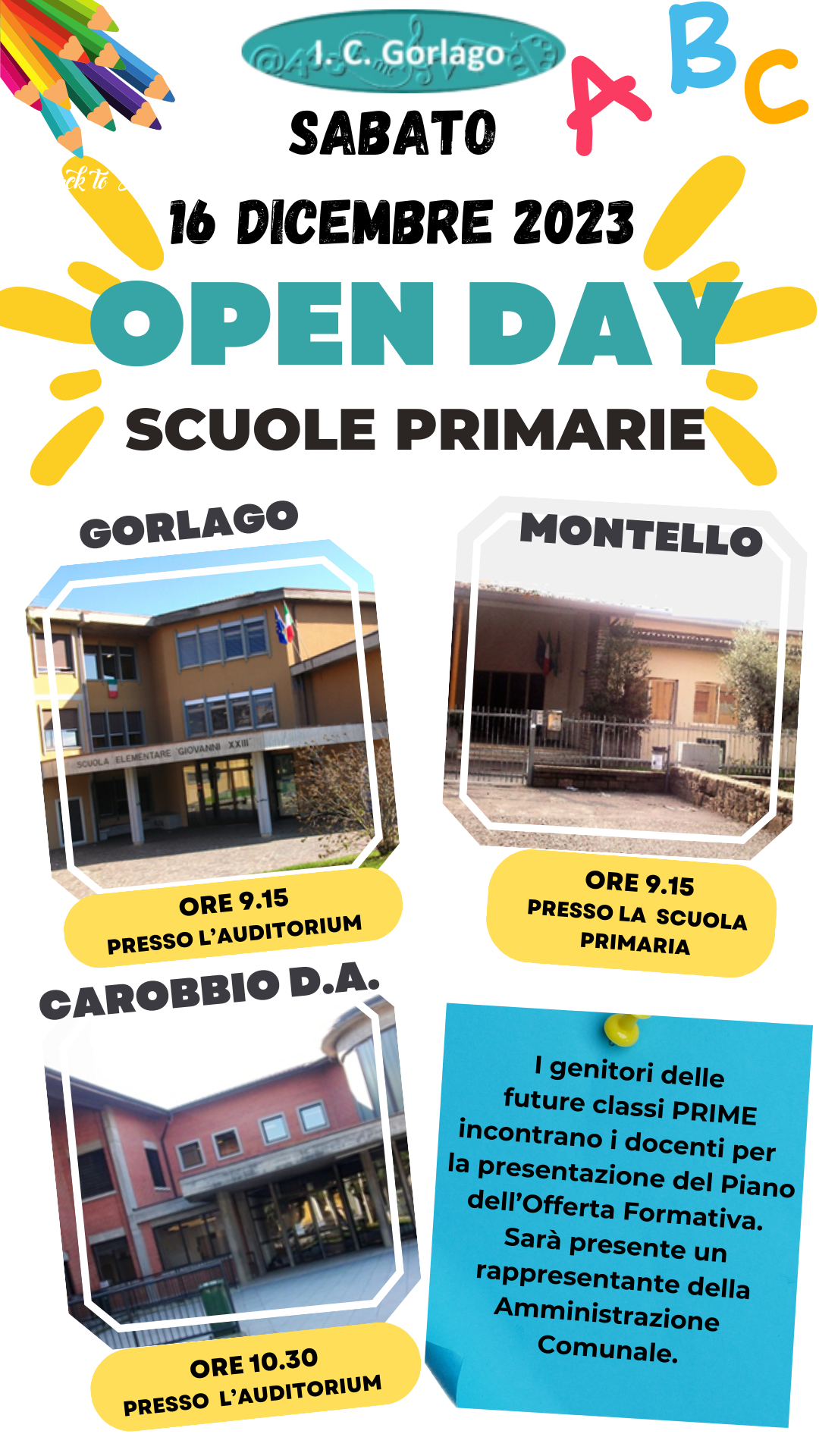 Si invitano i sigg. genitori delle future classi prime all’ Open Day delle Scuole dell’Istituto Comprensivo di Gorlago.